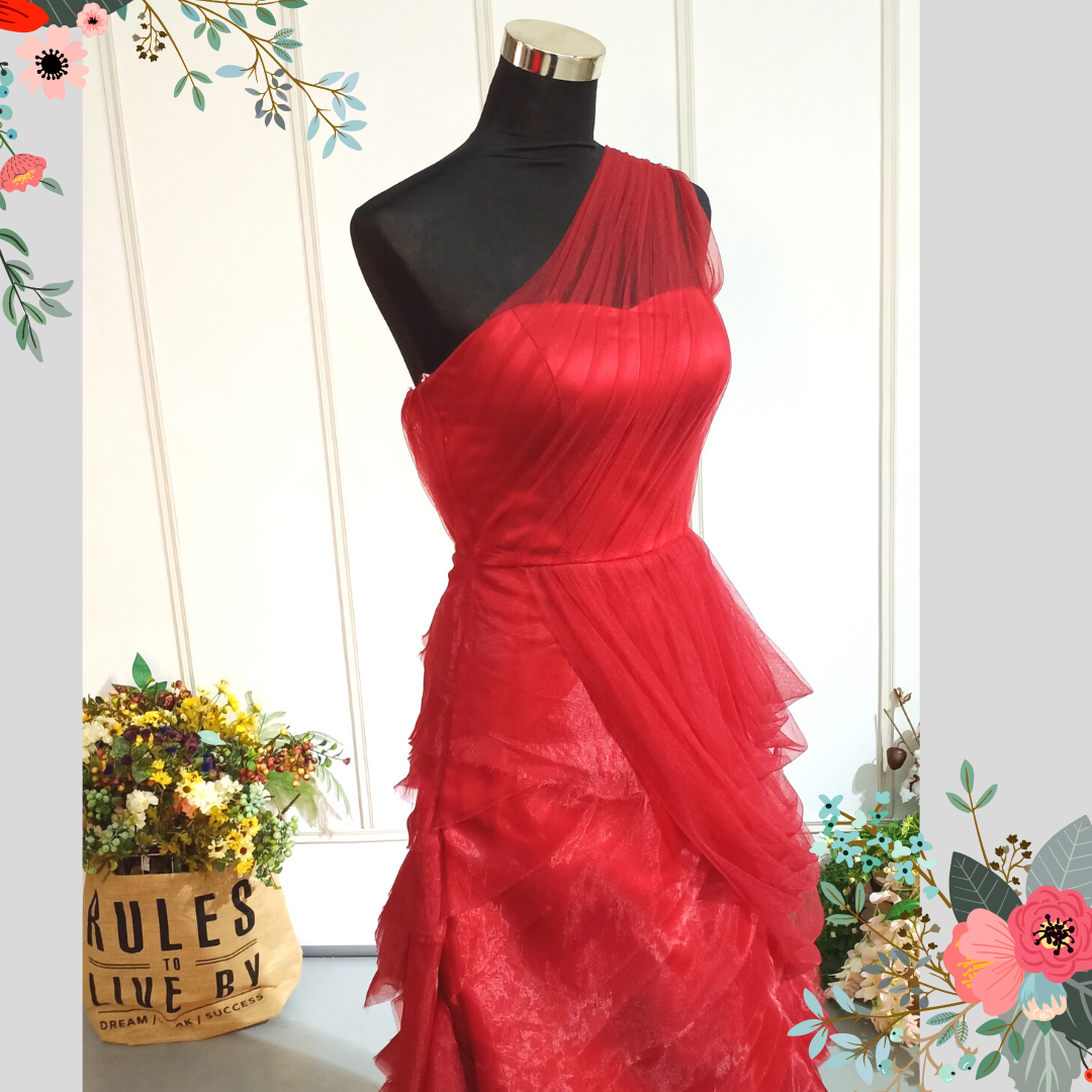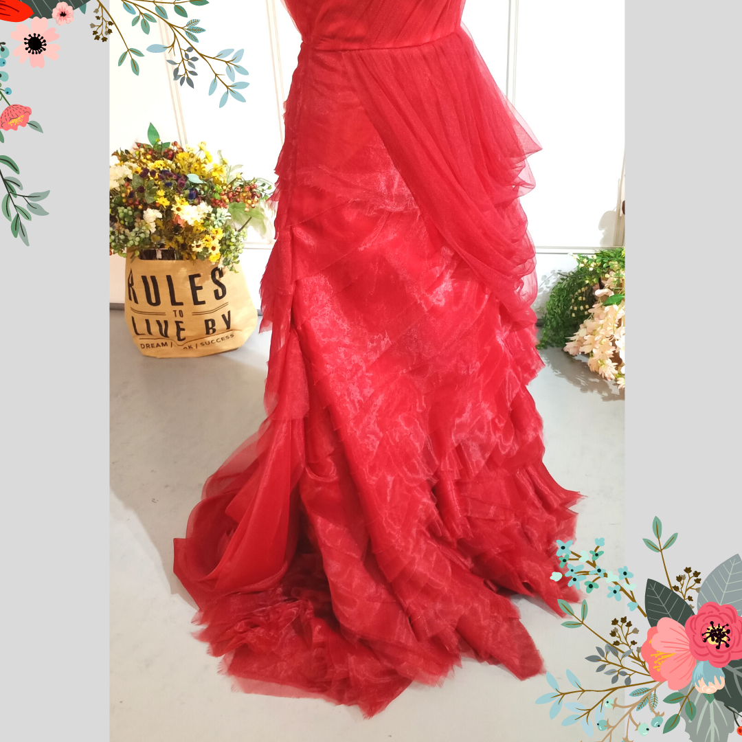401Ev005 Maroon Vera Wang inspired Farrah Rose Ruffles a Evening Dress rental Malaysia