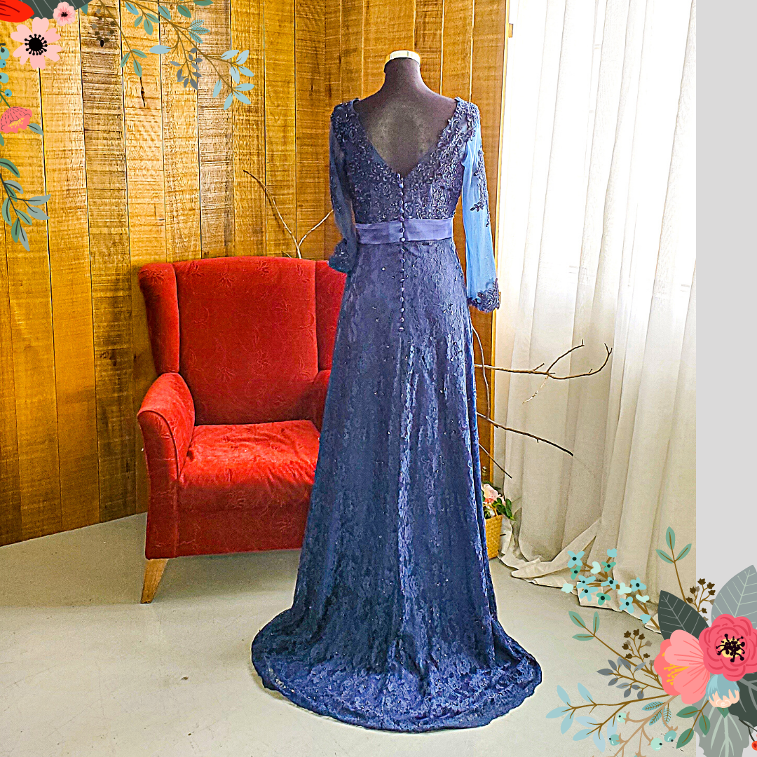 Evening Dress 601EL06 LY Plus Navy Blue Long Sleeve Trumpet a mom of bride