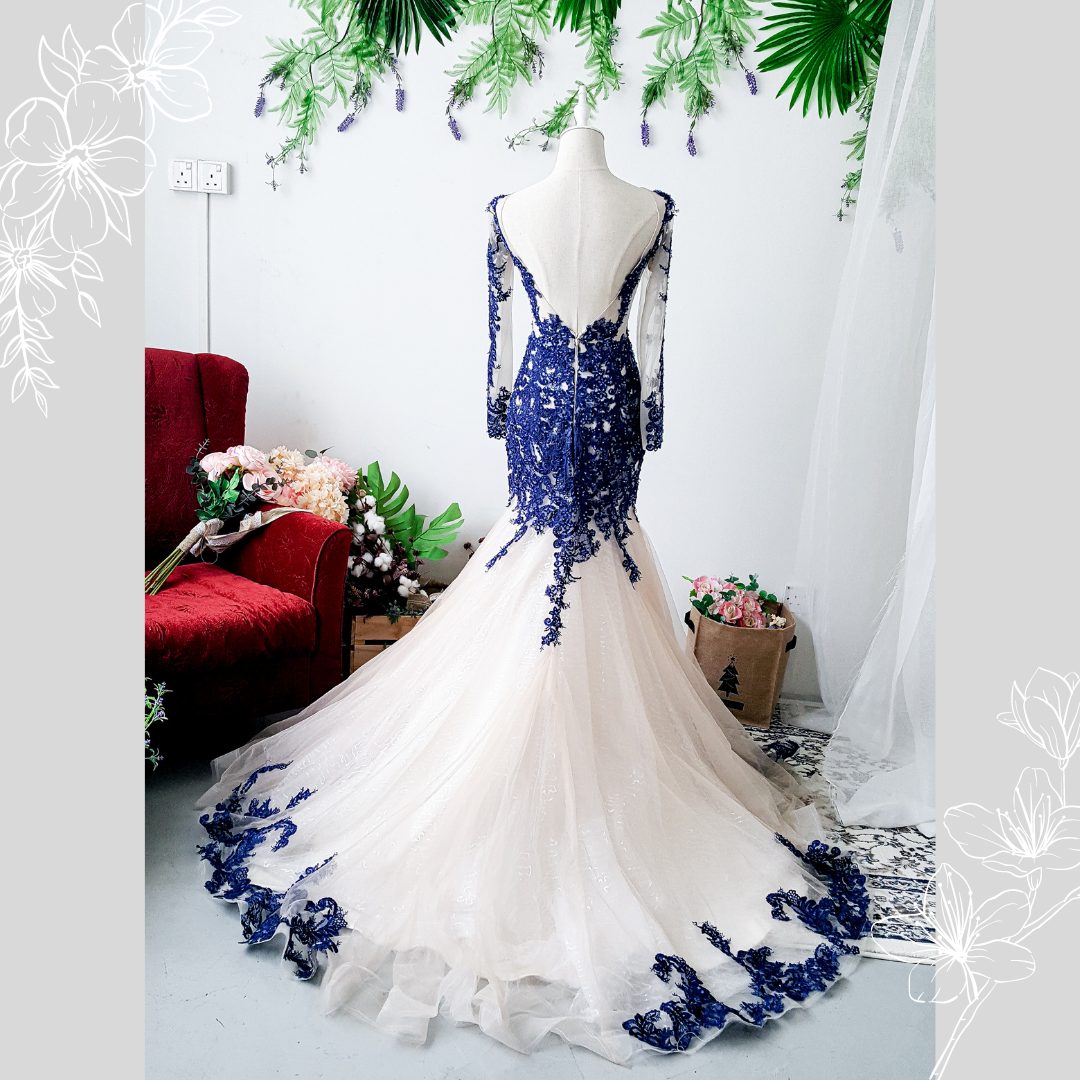 Evening Dress 711LLE01 LL TIfanny Navy Blue Illusion bodice trumpet Wedding Event Reception Dinner Dress rental Malaysia