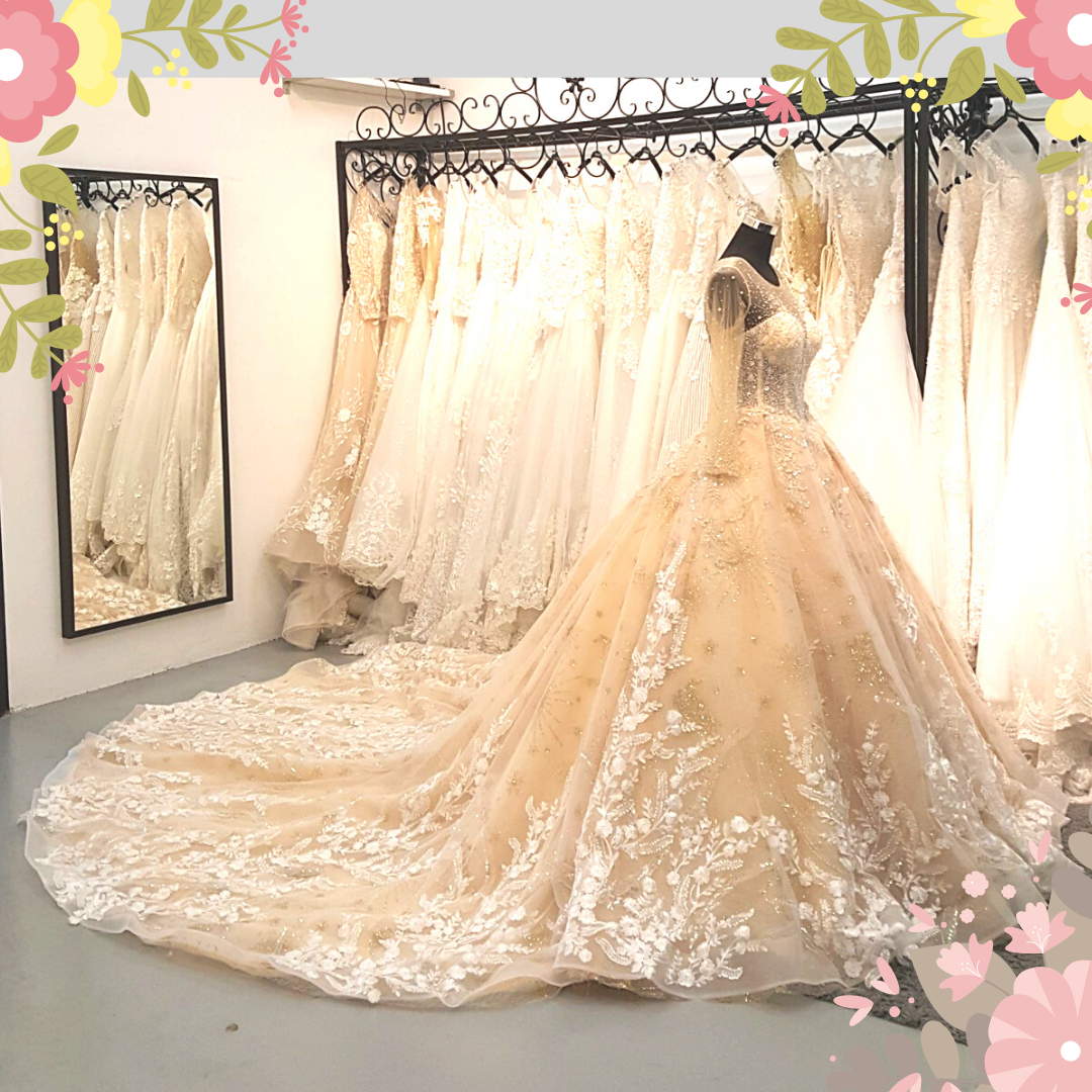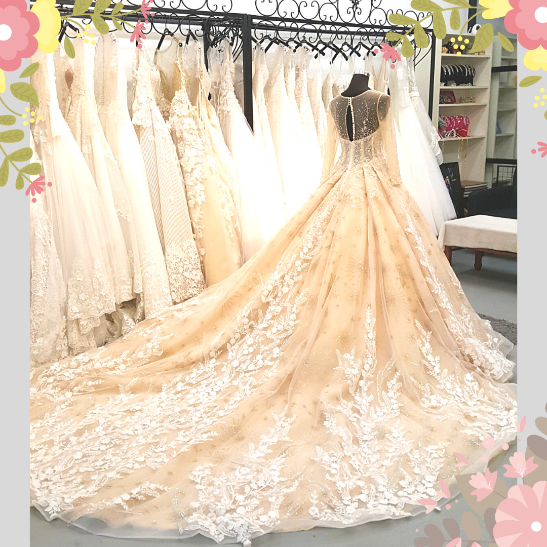 908XNW01 Jazmin Champagne LS Princess 4 Petite Bride Malaysia, Wedding Ballgown rental Malaysia, Bridal Dress Rental Malay Kuala Lumpur Rental