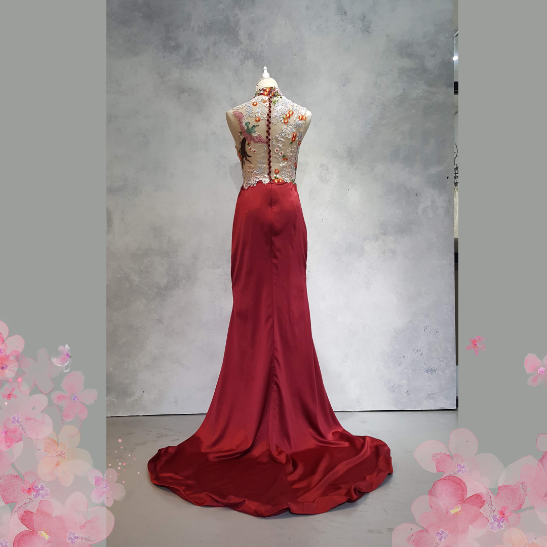 219EL01E01 Dey Cheongsam Red Satin Skirt Halter 14 Oriental Cheong Sam Qi Pao rental Malaysia Kuala Lumpur Petaling Jaya