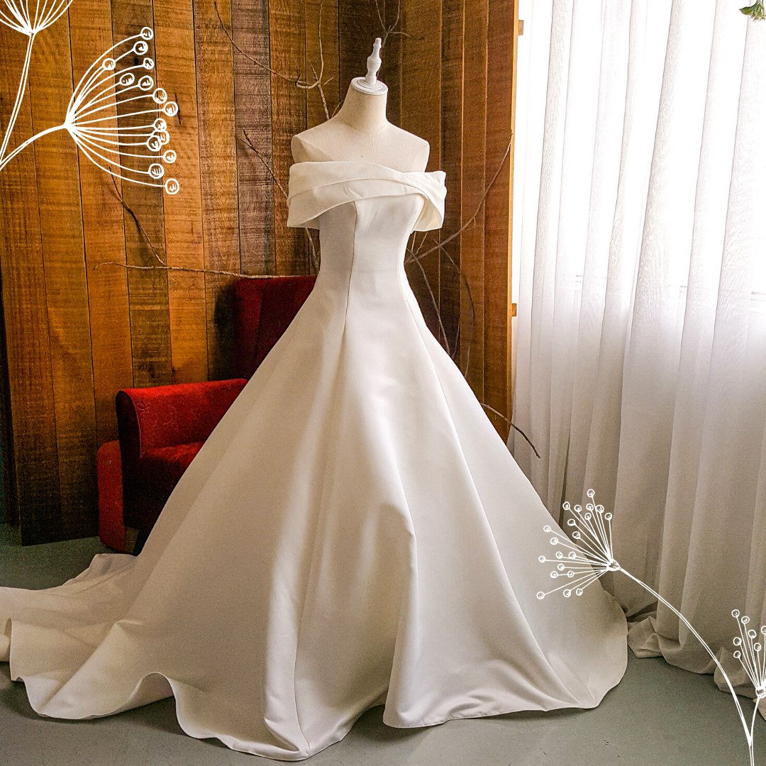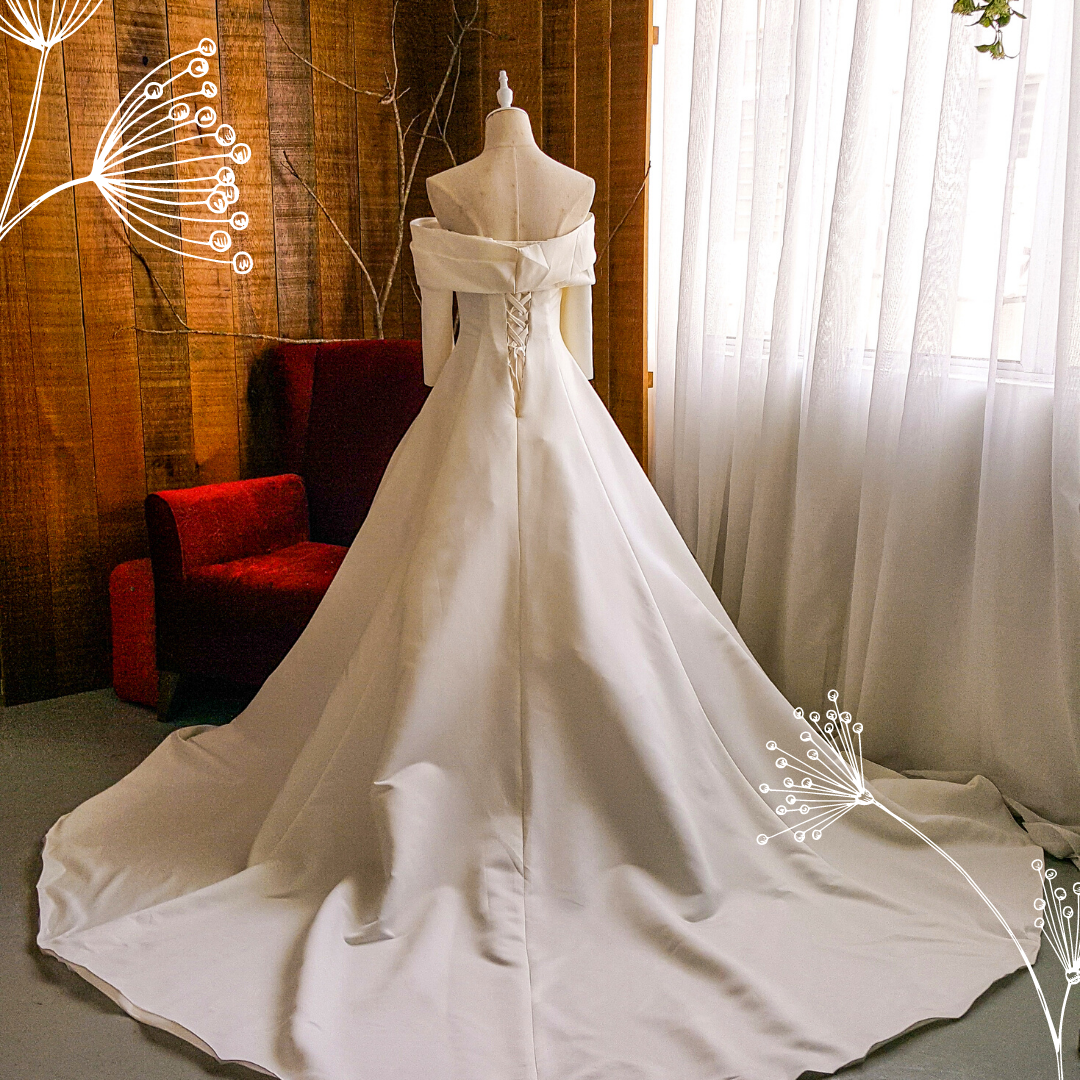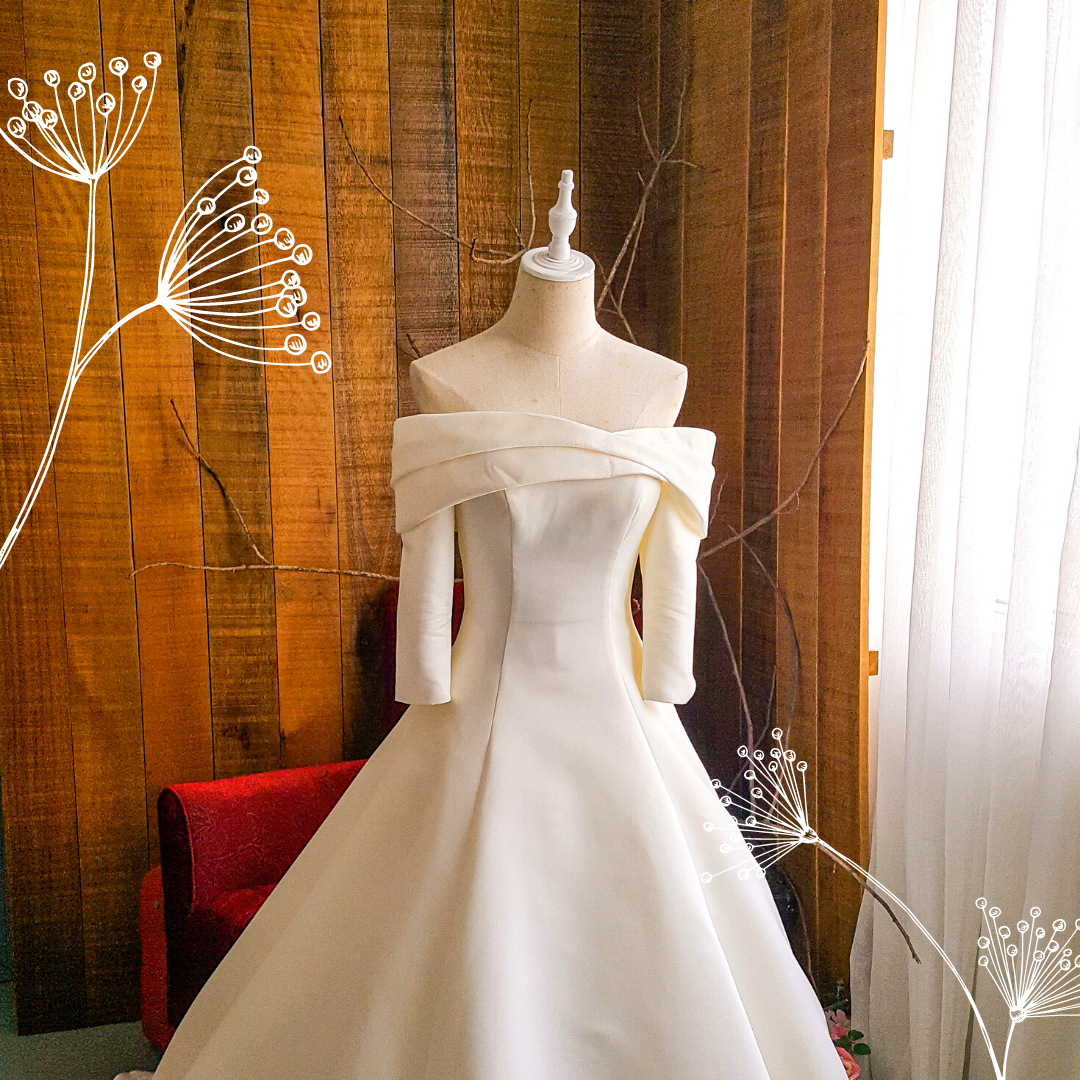 203BYW03 Saleena Off shoulder Long Sleeves Duchess Satin Princess a Bride Wedding Dress Designer Premium White Rental Kuala Lumpur