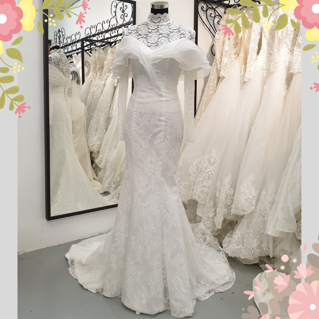 609DNW02 DN off shoulder Rose Trumpet LS 2 Long Sleeves Wedding Dress Rental Kuala Lumpur, French Lace wedding Dress rental Malaysia,