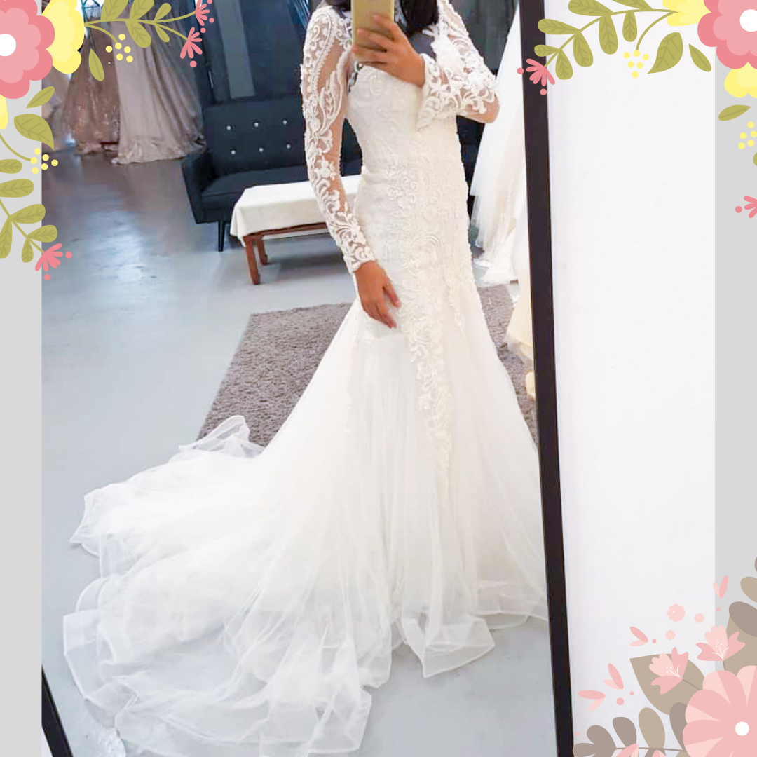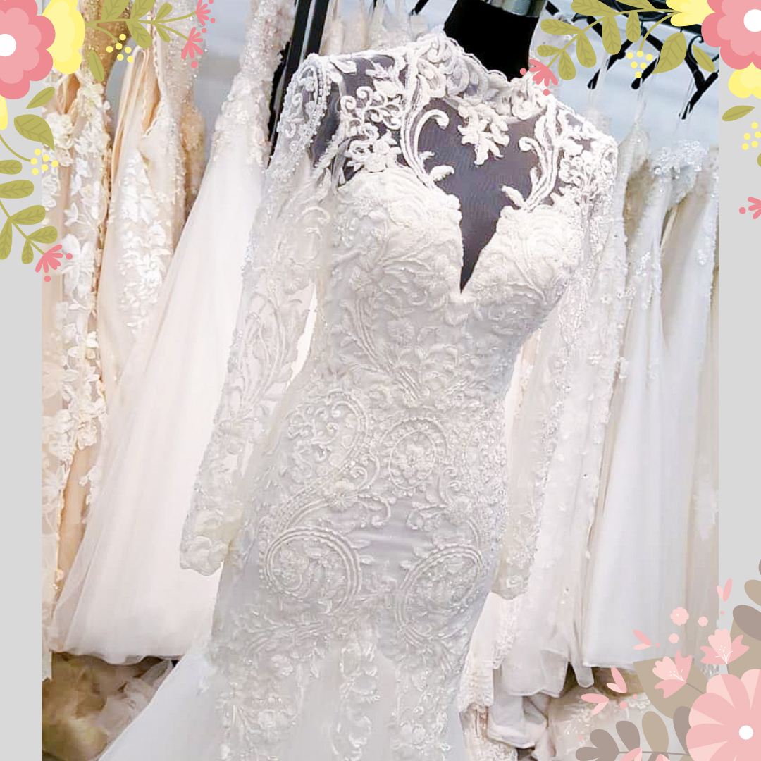 Long Sleeves designs suitable for Muslimah Bride/ Hijab Bride are available.