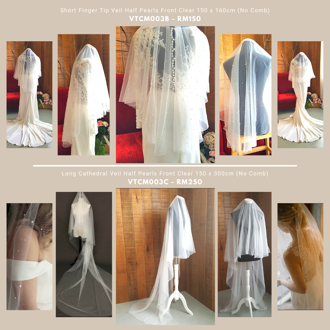 VTCMc003 TWD Premium Bride Wedding Veil Pearl Long Soft Tulle Net Front Clear Back Full Pearl no Comb/Veil Tudung Pengantin Nikah Sanding