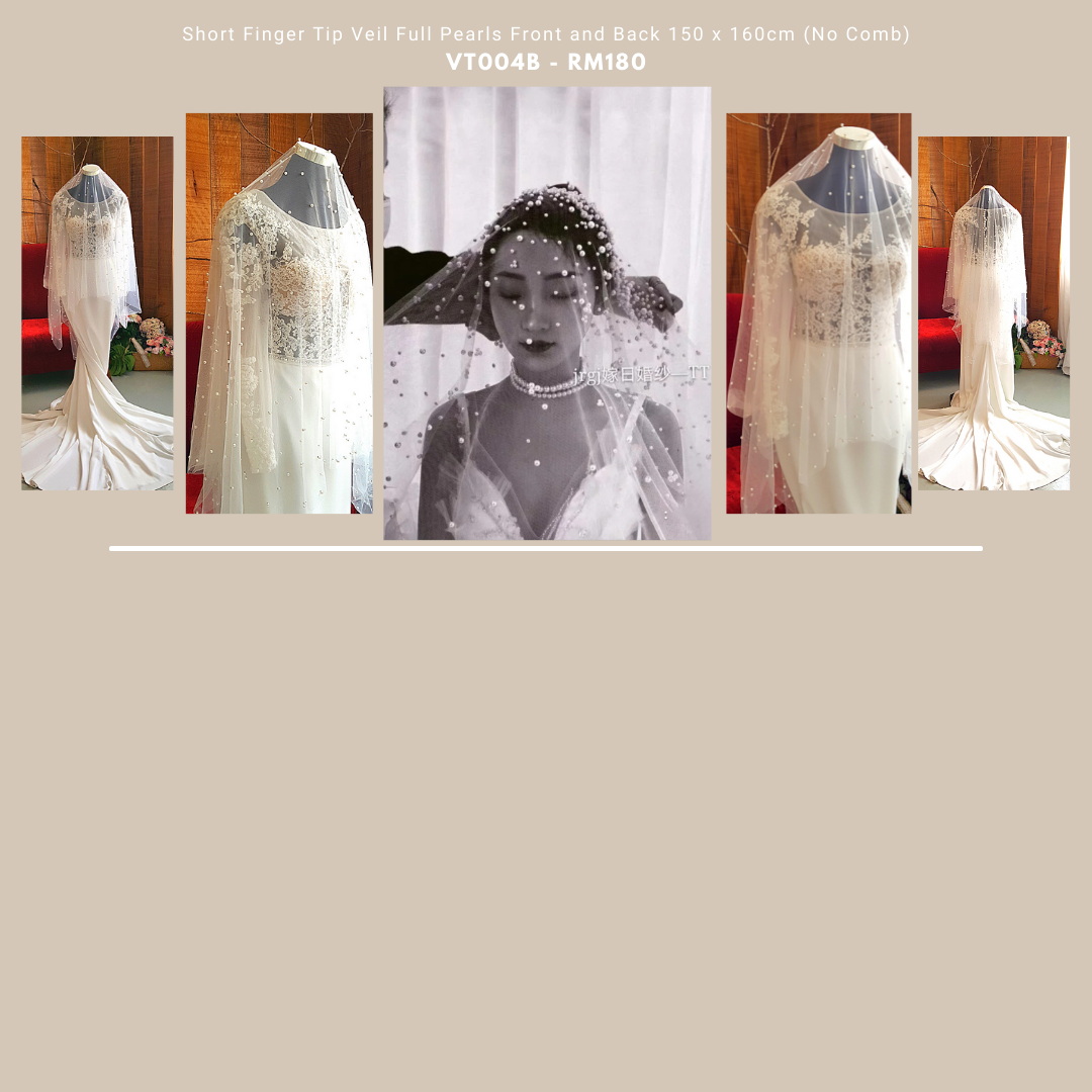 VTb004 TWD Premium Bride Wedding Veil Full Pearl Short Soft Tulle Net Finger Tip no Comb/Veil Tudung Pengantin Nikah Sanding