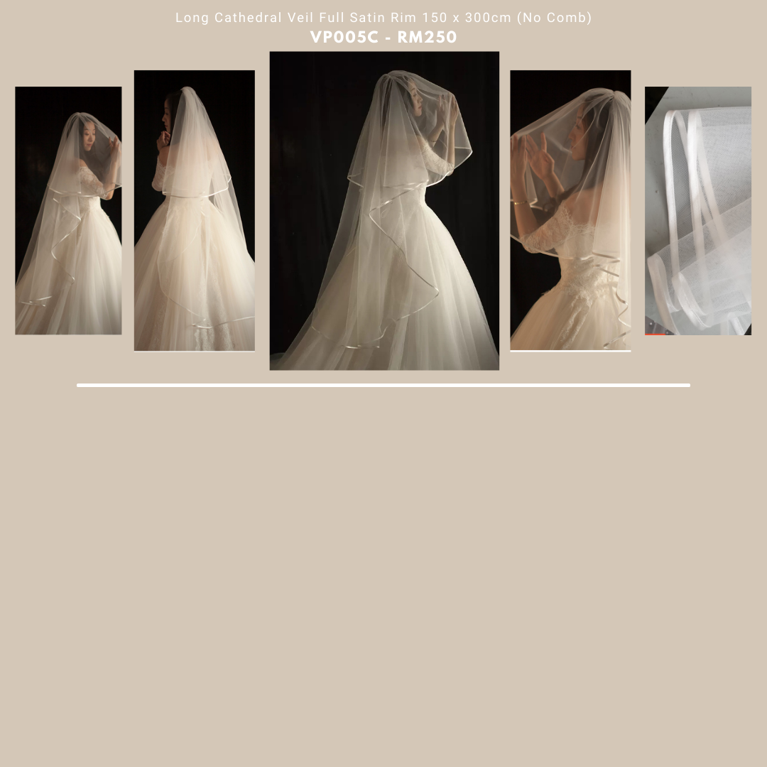 VP005c TWD Premium Bride Wedding Veil Satin Rim Long Soft Tulle Net Chapel Length no Comb/Veil Tudung Pengantin Nikah Sanding