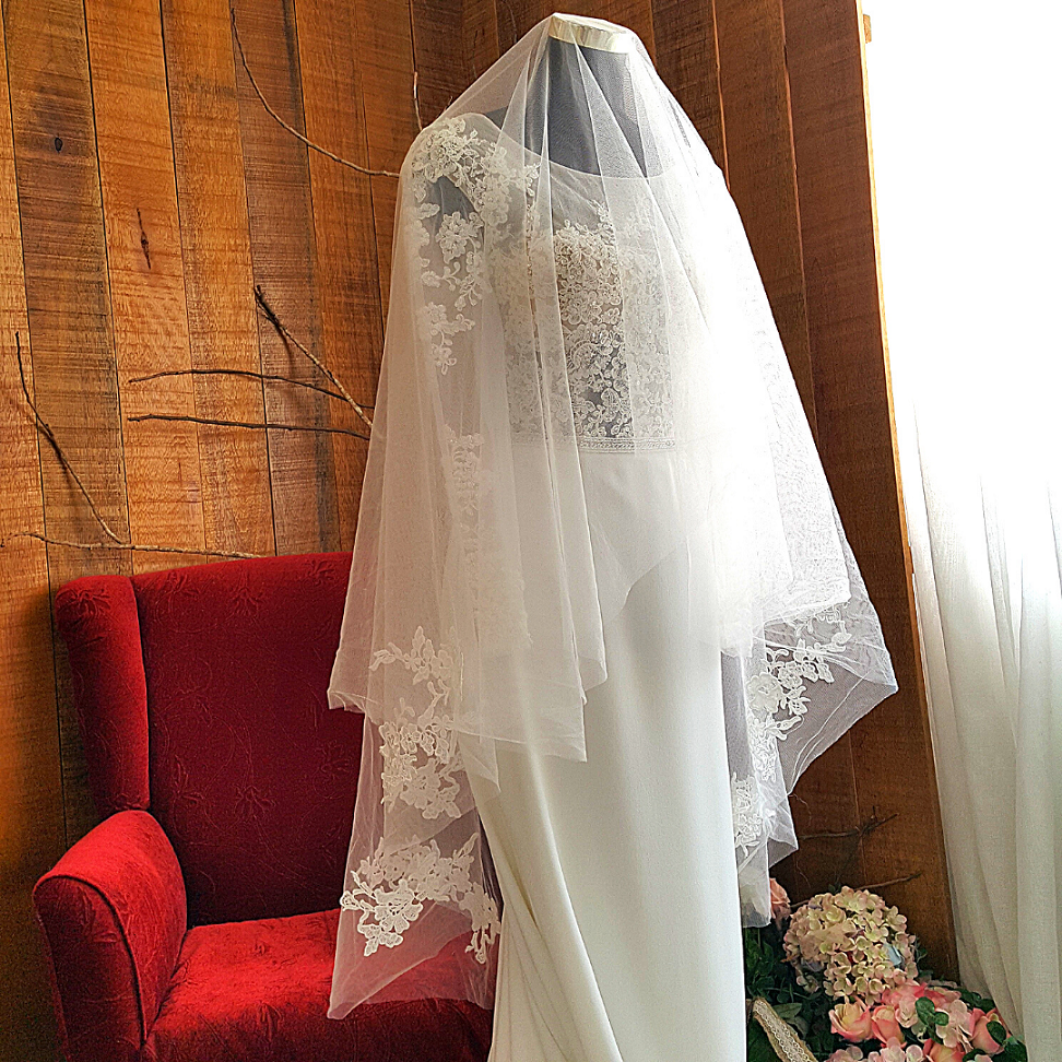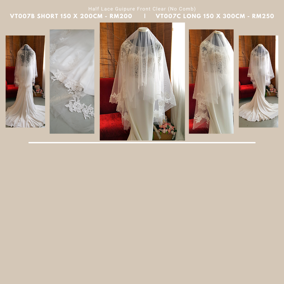 VT007b TWD Premium Bride Wedding Veil Guipure Embroidered Lace Medium Finger Tip Soft Tulle Net Finger Tip Front Clear no Comb/Veil Tudung Pengantin Nikah Sanding