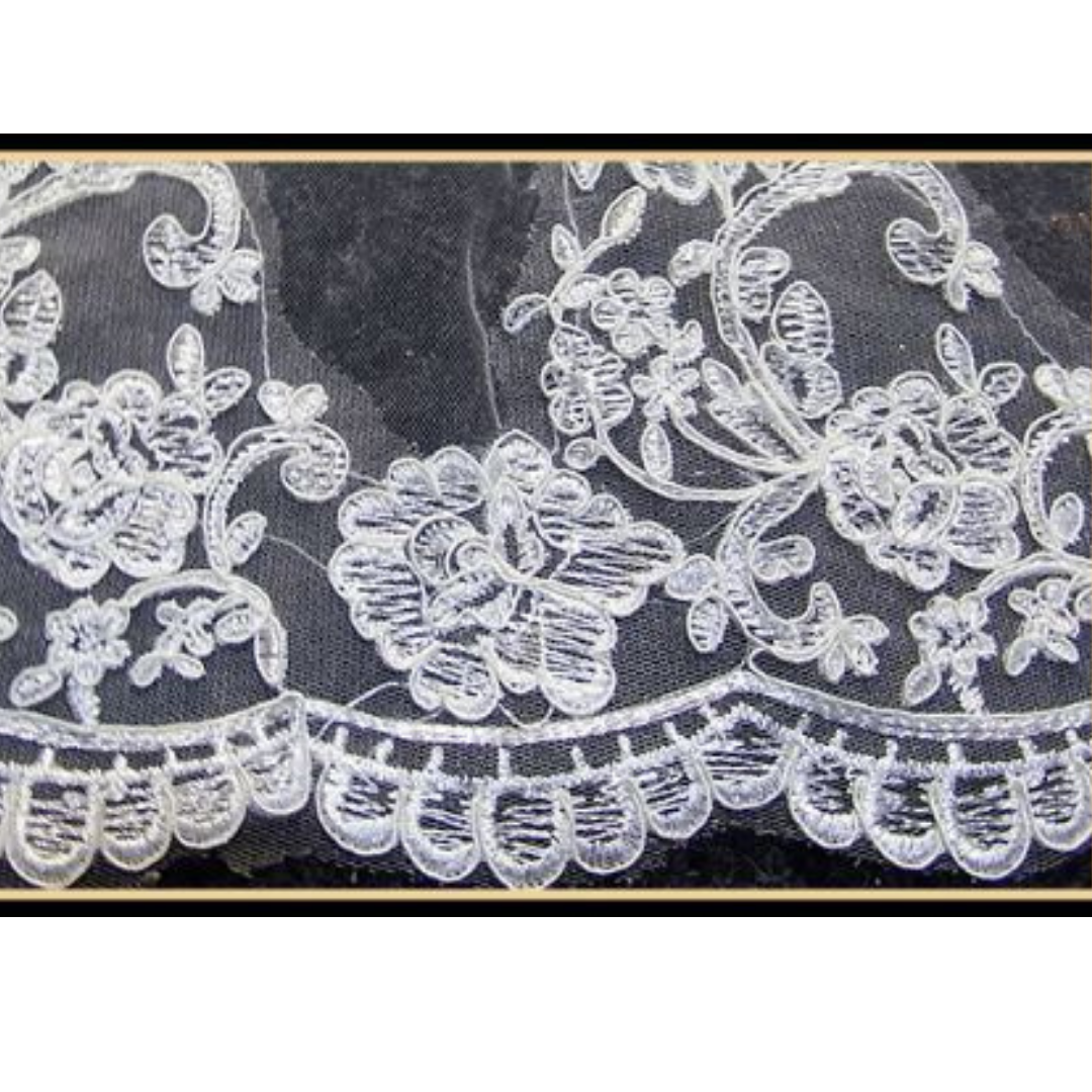 French Alencon Corded Lace Cathedral length 4 meter (with Comb)