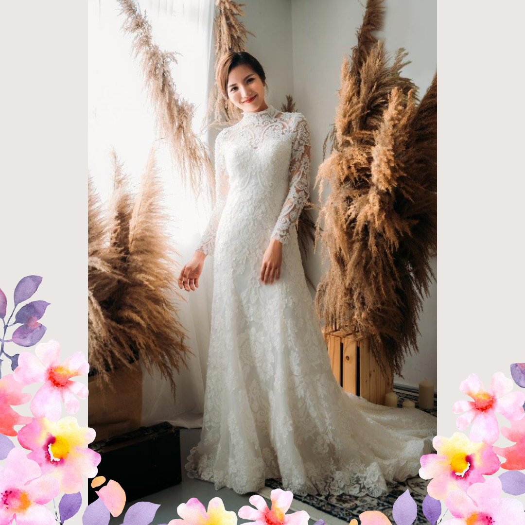We have a wide collection of long sleeves wedding dresses suitable for Muslimah and Hijab brides.