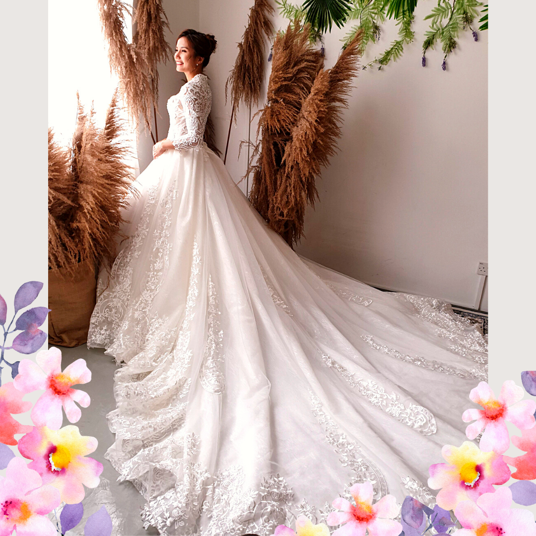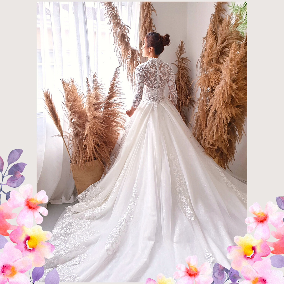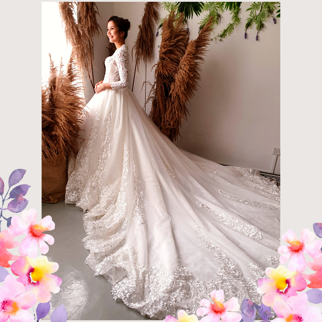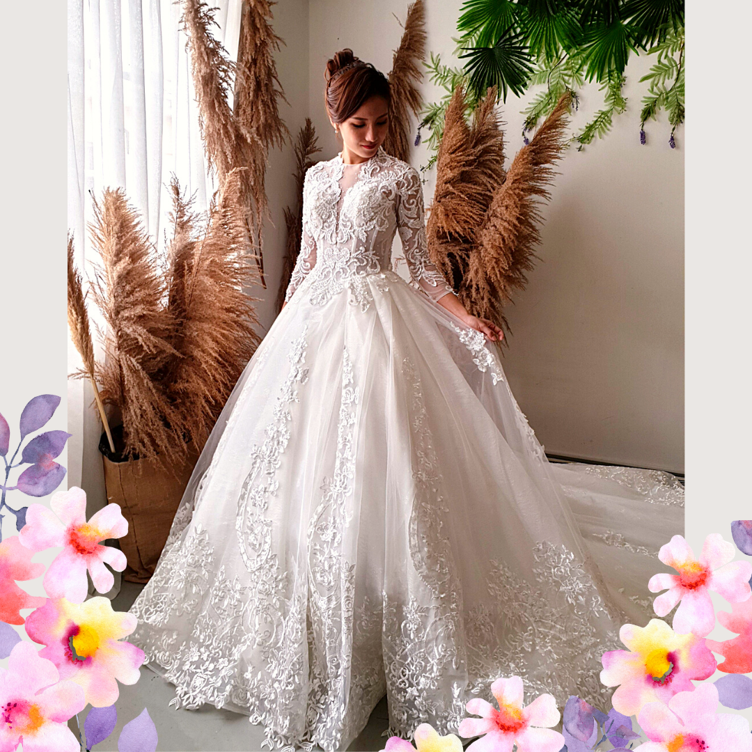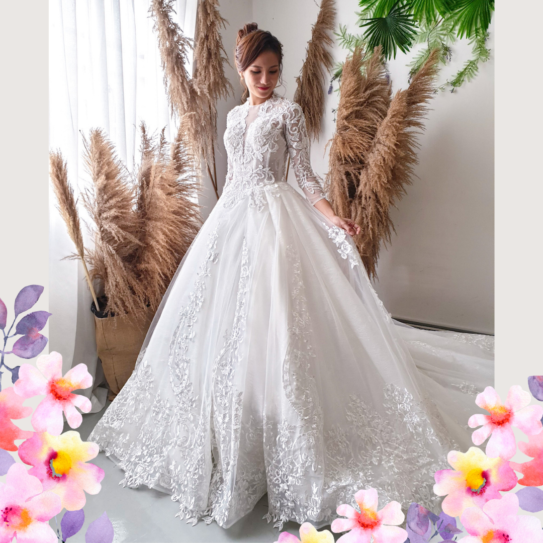 We have a wide collection of long sleeves wedding dresses suitable for Muslimah and Hijab brides.