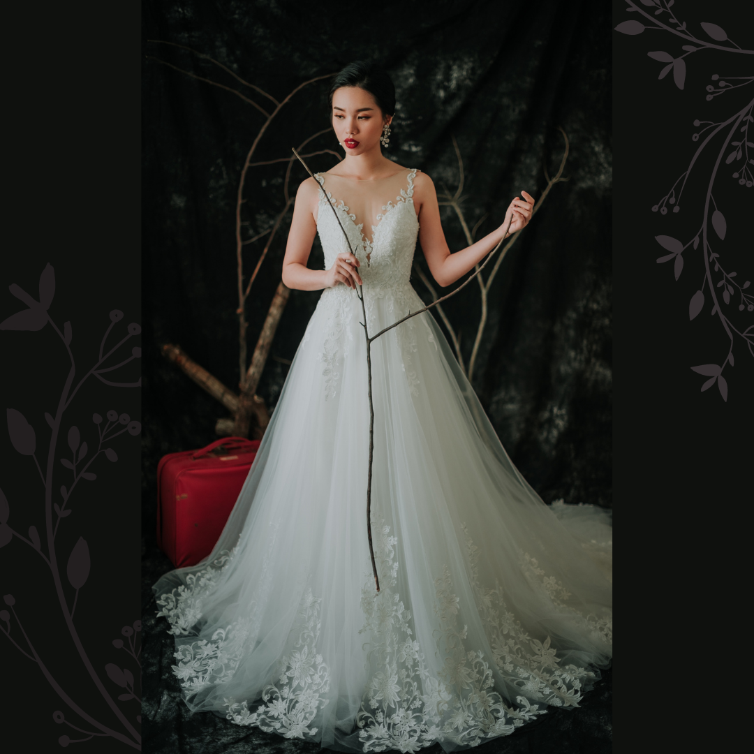 Inspired by classic and timeless wedding dress of all time, we carry a big collection of wedding gowns in store, available for rental.