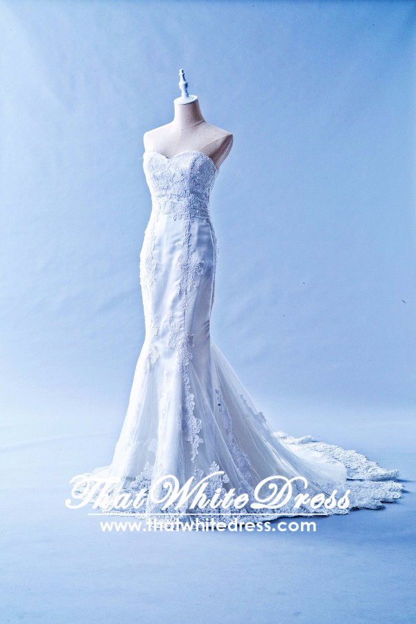 401W02 Trumpet Hand Embroidered Lace Heart shape Tube Wedding Dress Malaysia