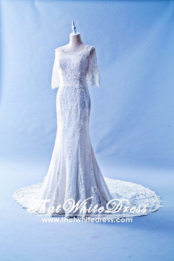 405WL03 Plus size Boat neck Long sleeves French Chantilly Lace Lace Trumpet Mermaid Wedding Dress Gaun Baju Pengantin Muslimah Kahwin Nikah Sanding Malaysia Kuala Lumpur Petaling Jaya