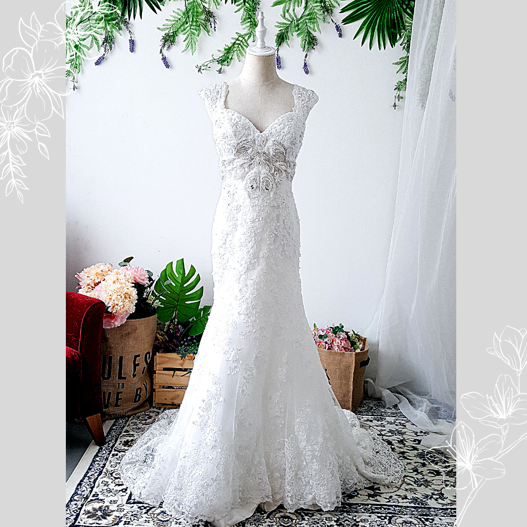 605XJWL02 XJ Plus Cap Sleeves Sweet Heart A Line Silver Alencon Lace a Plus Size Bride Malaysia Dress Rental