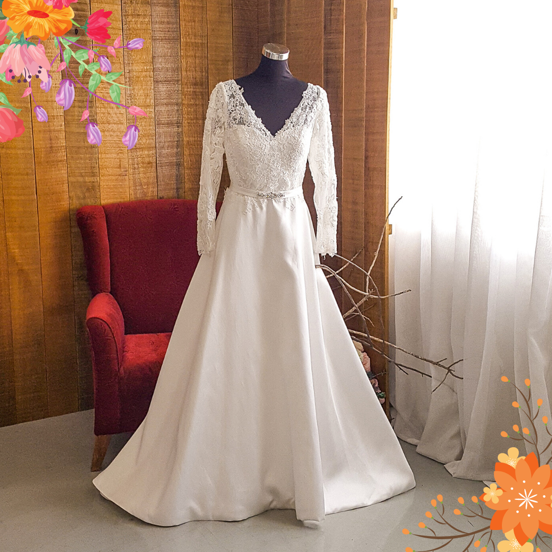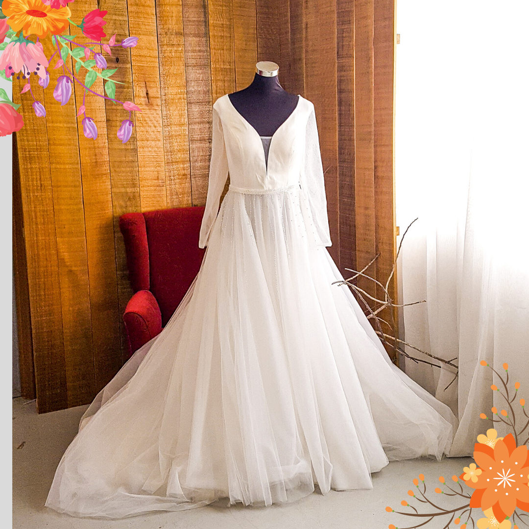 20YS01WL01 Mia Plus LS Satin Strap V neck Tulle A line Wedding Dress