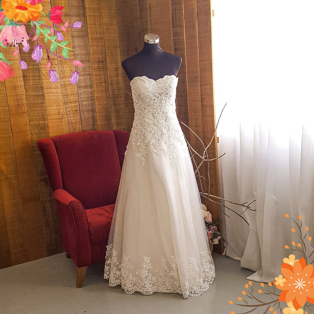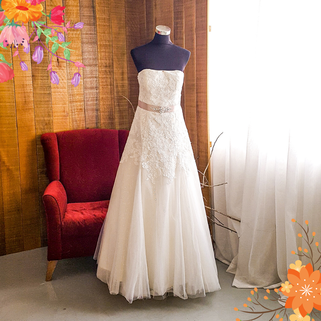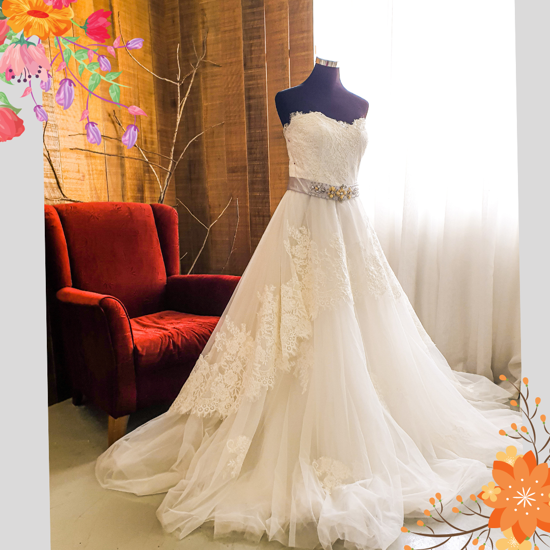401W014 HH A line floral lace Heart Shape Pink Belt b Plus Size Bride Gown Rental Malaysia