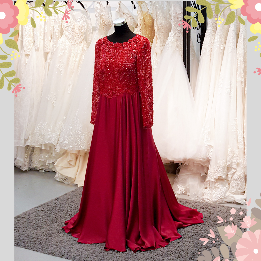 Evening Dress 603CSEL01 Plus Size Maroon Mikado Silk Long Sleeves Satin Princess