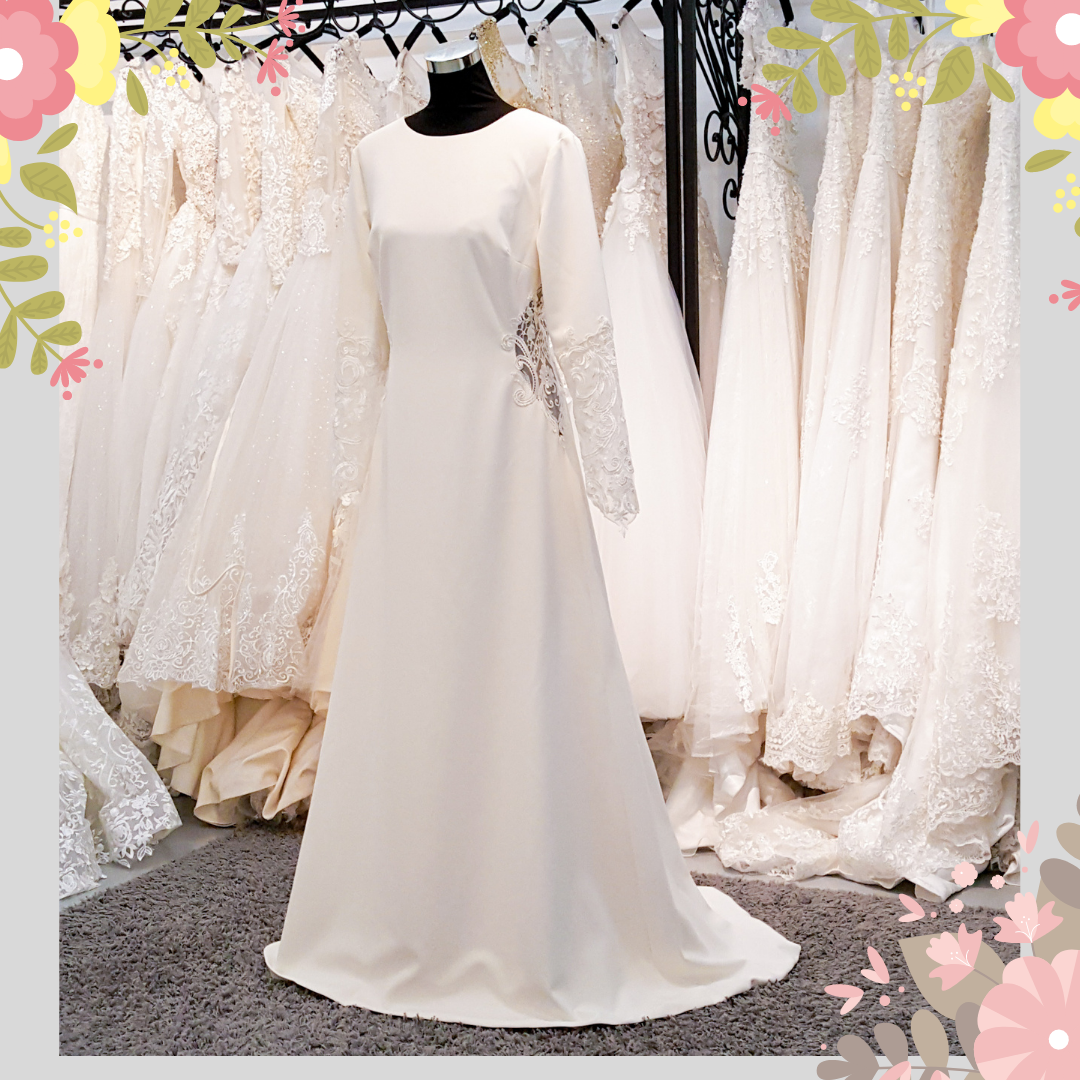 910BY05WL01 Yarrie PLUS LS Crepe Plain Cut out Waist a Plus Size Bride Gown Rental Malaysia