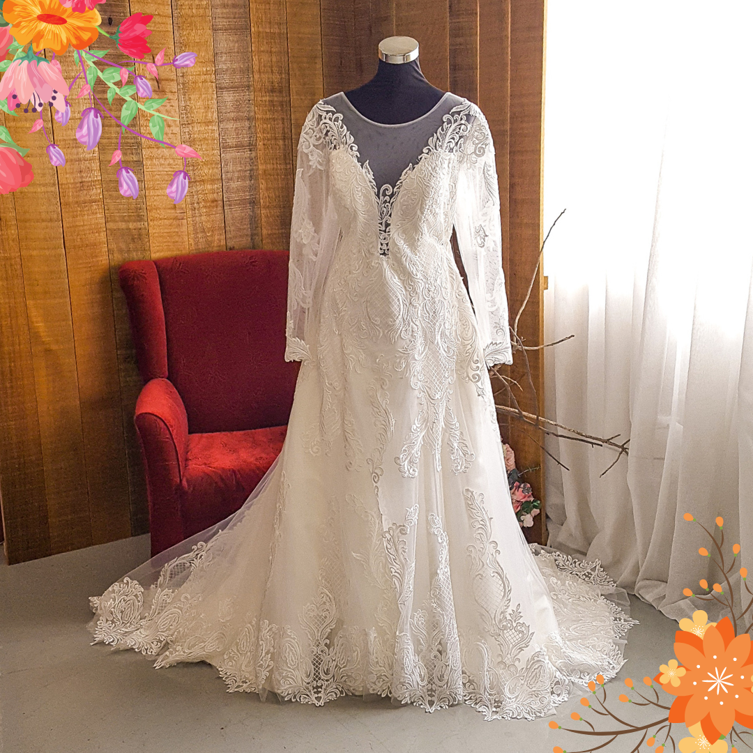 20YS02WL03 Amelia Plus LS Baroque A line a Plus size Bride Event Reception Dinner Dress rental Malaysia
