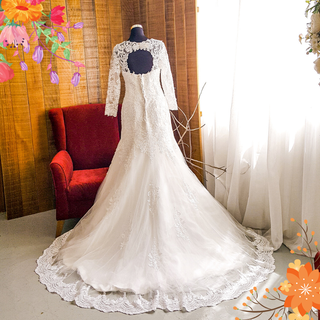 Can be teamed with a detachable long sleeves inner garment to convert it into a conservative covered back dress suitable for church wedding, muslimah wedding/majlis perkahwinan, or nikah.