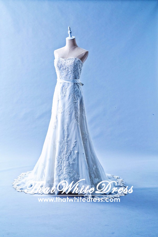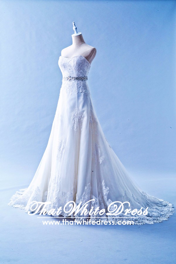 412W09 XJ A line lace crystal belt Wedding Dress Designer Malaysia