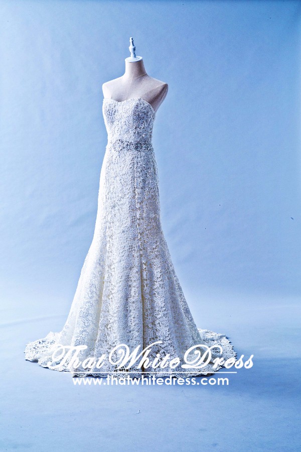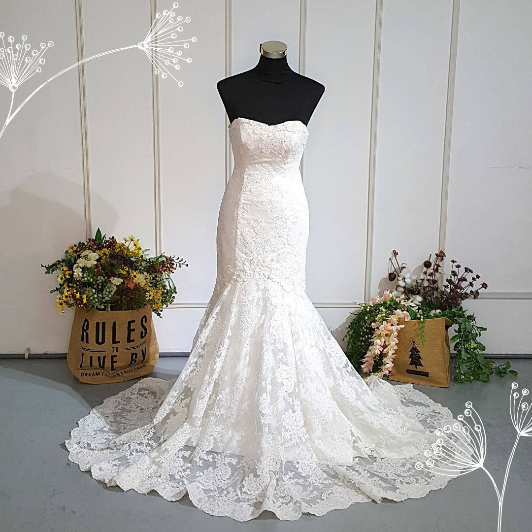 401W004 Sweet Heart Mermaid French Lace Vintage Tube single tier Wedding Dress with Long Train Malaysia