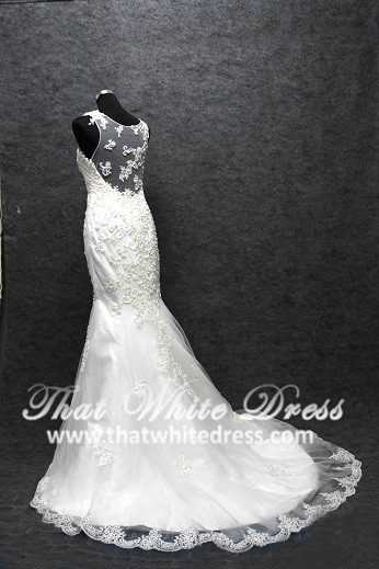Designer wedding Gown S1412W16 LL Illusion back asymetrical lace Berta Bride