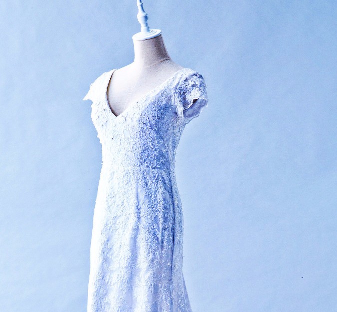 Wedding Dress Style: Cap sleeves with Deep V neckline