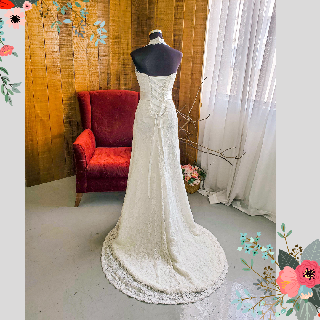 305W001 MR Halter Lace Aline a Trumpet Wedding Dress rental Malaysia