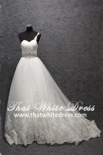 Designer wedding Gown S1503W02 IS One Shoulder Lace Princess