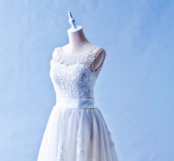 401W017 SSY Sleaveless A Line Illusioned Neckline Top Malaysia Wedding Dress Designer Rental Rosa Clara