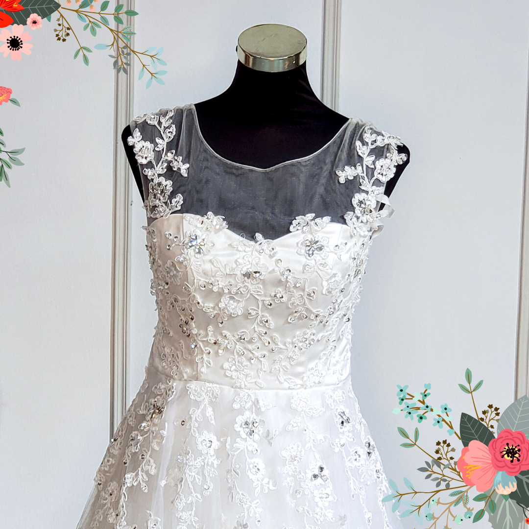 S1408W07 LL Illusioned neckline Princess Cap a Kahwin Pengantin Nikah