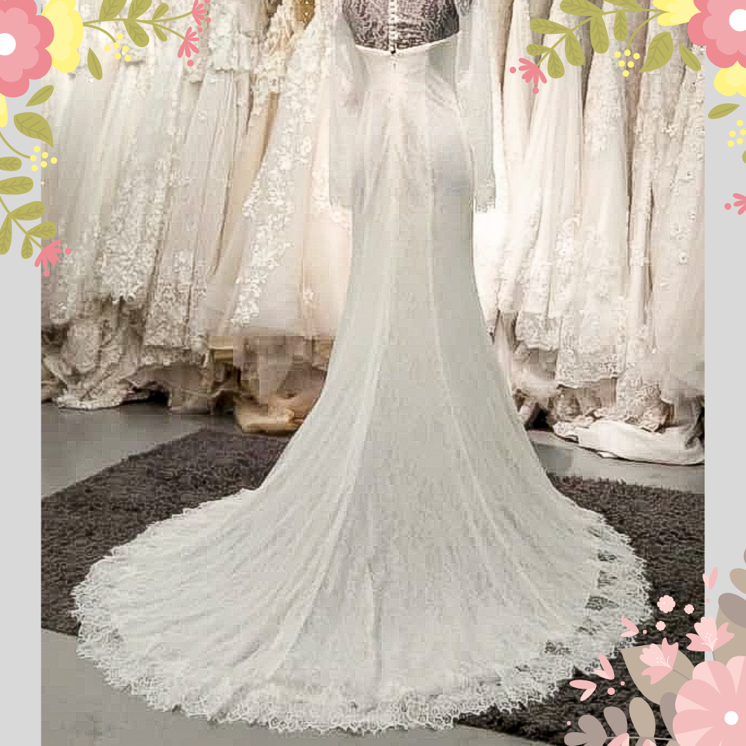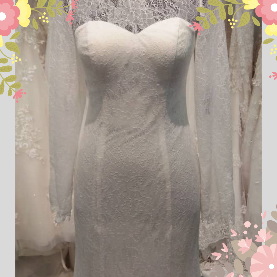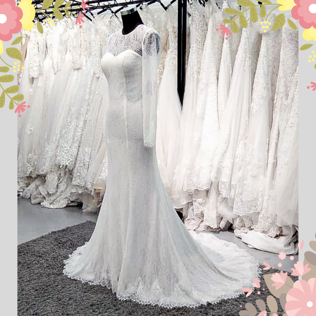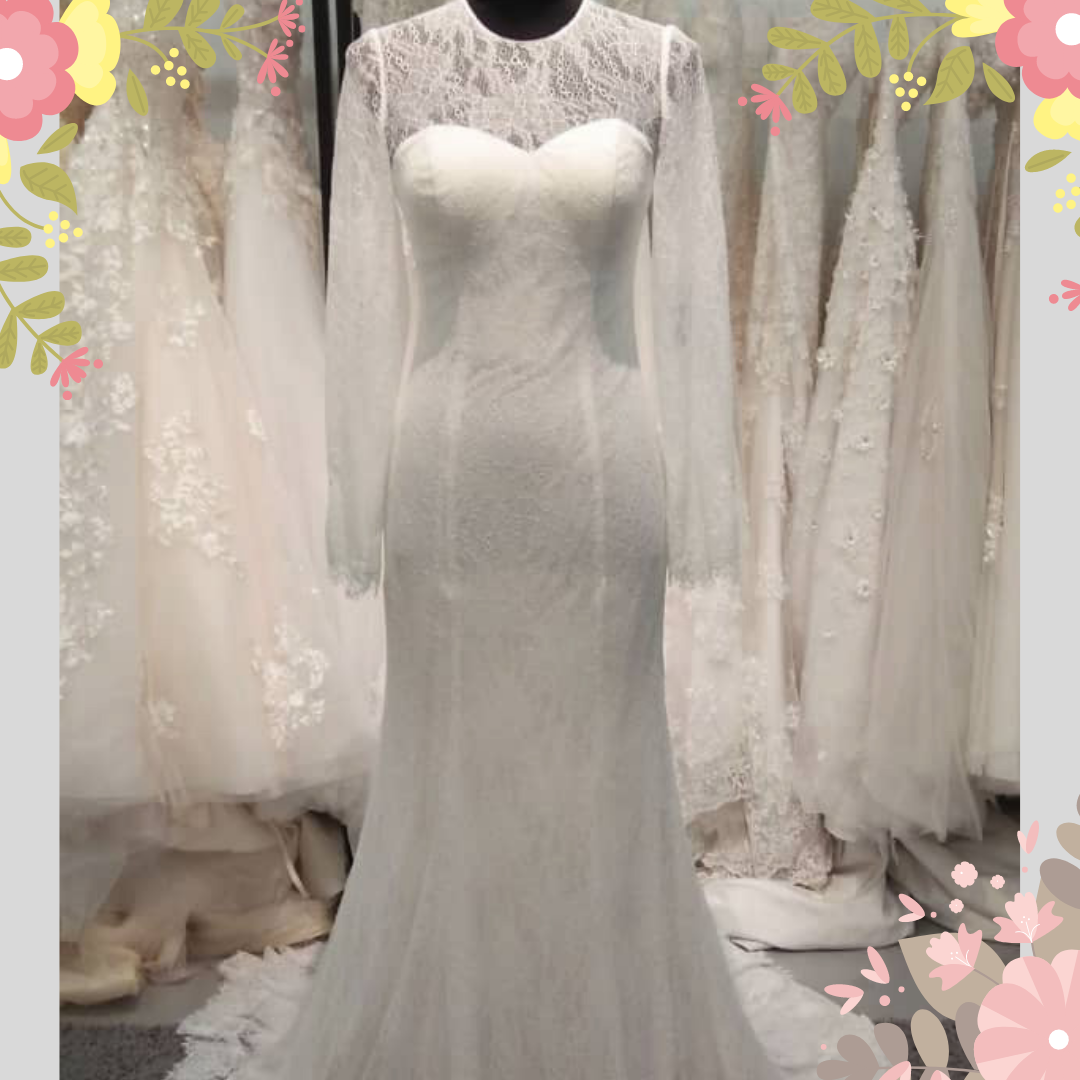 812BY03W01 Ellye Long Sleeves Chantilly lace trumpet zip 14 Long Sleeves Wedding Dress Rental Kuala Lumpur, French Lace wedding Dress rental Malaysia,