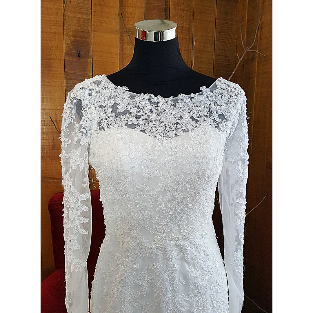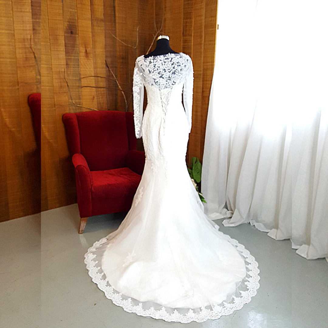 Long sleeves bateau boat neck Lace French Chantilly floral Lace Trumpet Church ROM Wedding Dress Rental Gaun Baju Pengantin Muslimah Kahwin Nikah Sanding Malaysia Kuala Lumpur Petaling Jaya